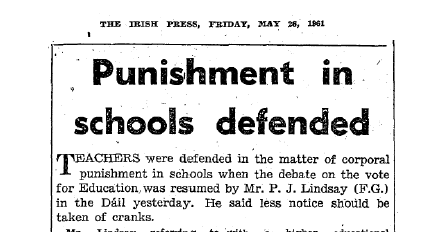 Teachers split over ban on school cane - Irish Independent, 27th January, 1982